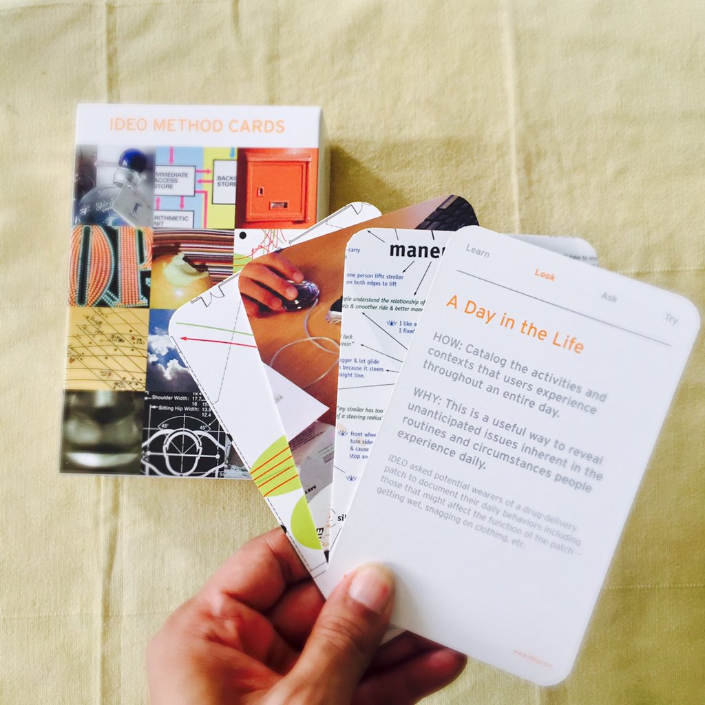 "These cards are low-tech and offer 51 ways to inspire design, while keeping human at the center of the process, the whole time. Each card describes one method and includes a brief story about how and when to use it. These cards are not a 'how to' guide. They are a design tool meant to help you explore new approaches and develop your own."More information about Method Cards can be found here on IDEO's website.